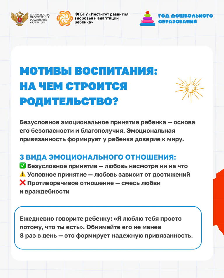 2. Приобщение родителей к ценностям осознанного и ответственного родительства как основы благополучия семьи и развития личности ребенка.